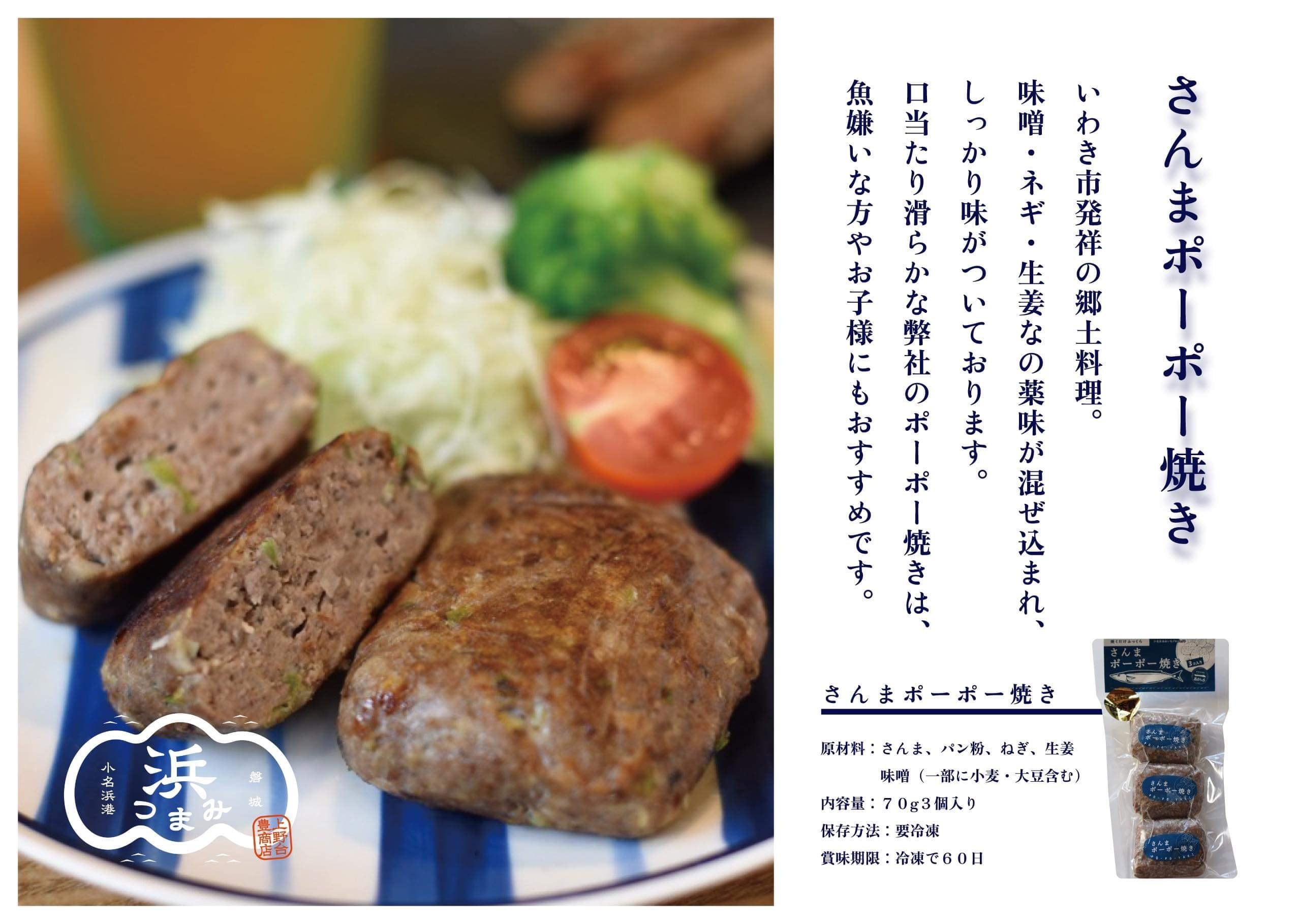 小名浜さんま郷土料理再生プロジェクトの看板商品です。水揚げ後24時間以内に加工することで旨味と鮮度をすり身に閉じ込めました。一般的なさんますり身に特有の生臭さは一切なく、さんま本来の旨味が感じられます。