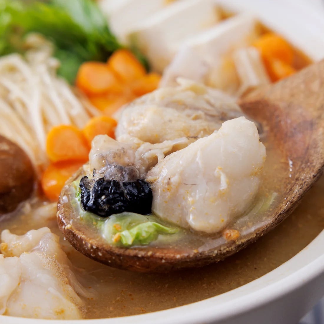 〆には、ご飯をいれておじやにしたり、うどんや米粉麺をいれてお召し上がりいただくと、あんこうの出汁を最後までしっかりと味わえおすすめです。